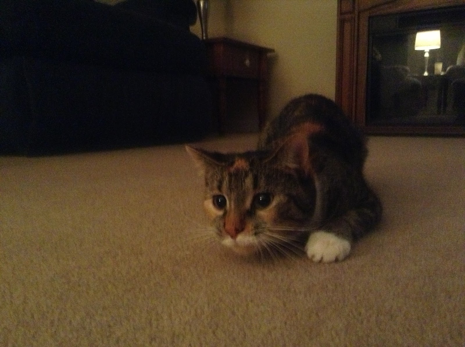 This is a much more tasteful picture. Normally, she runs whenever she sees that I'm trying to take a picture, but this time she actually sat still for a few seconds. And, I do mean seconds.